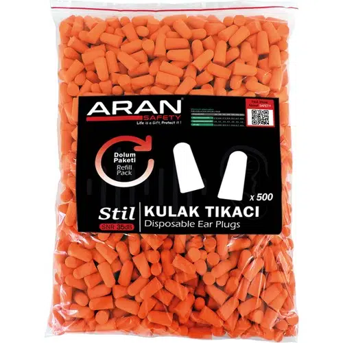 Temel Özellikler: ARAN SAFETY STIL tek kullanımlık kulak tıkaçları, çevresel gürültüyü büyük ölçüde azaltarak işitme hasarına karşı basit ve etkili koruma sağlar.