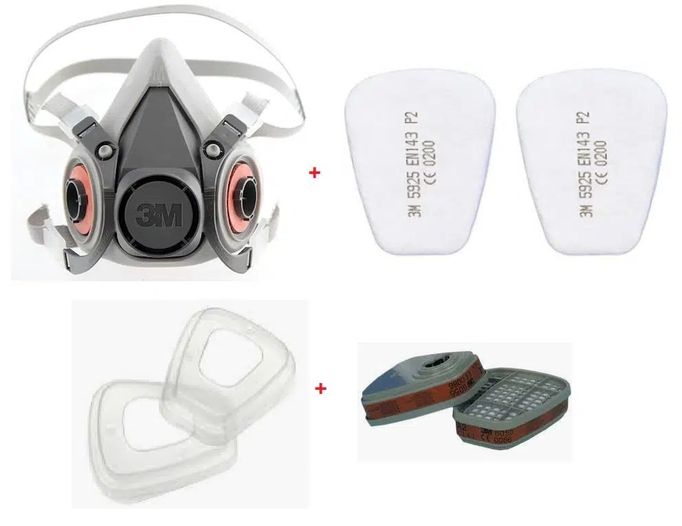 3M 6200 Gaz Maskesi + 6059 ABEK Filtrel + 3M 5925 P2 Toz Pedi + 3M K501 Filtre Tutucu Kapak Gaz ve Toz Koruma Kombine Set