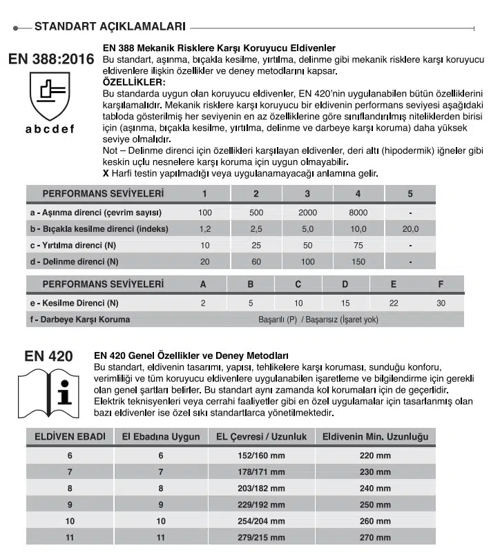 Kesik tehlikelerine karşı çalışanı korumaktadır. Keskin kenarlı meteryallerin ve aletlerin tutulması sonucu oluşan kesikler ile ilgili potansiyel yaralanmalara karşı koruma sağlar.