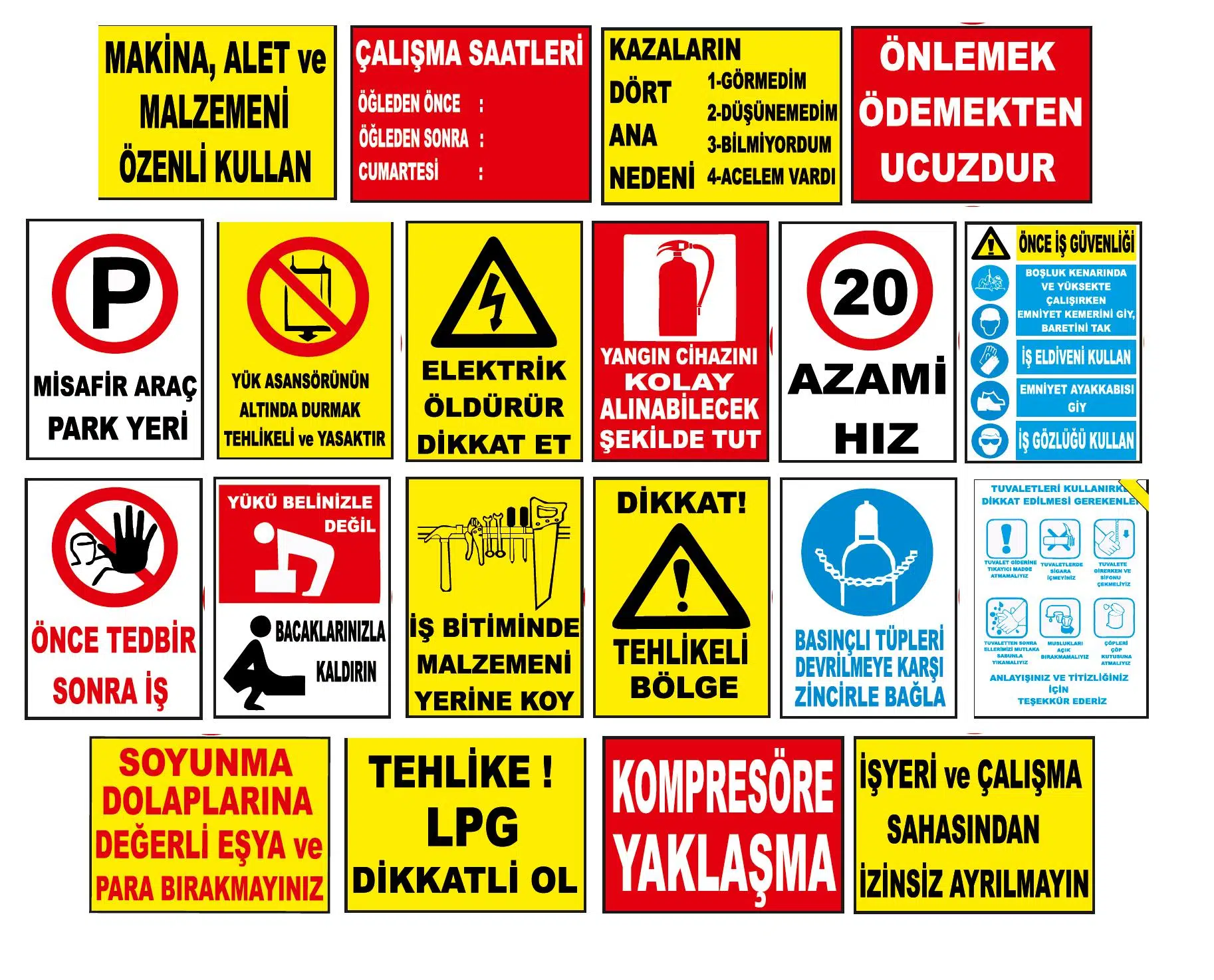 | Etiketler | Atölye Fabrika İşyeri İş Güvenliği Uyarı Levhası -20 adet Pvc Levha |