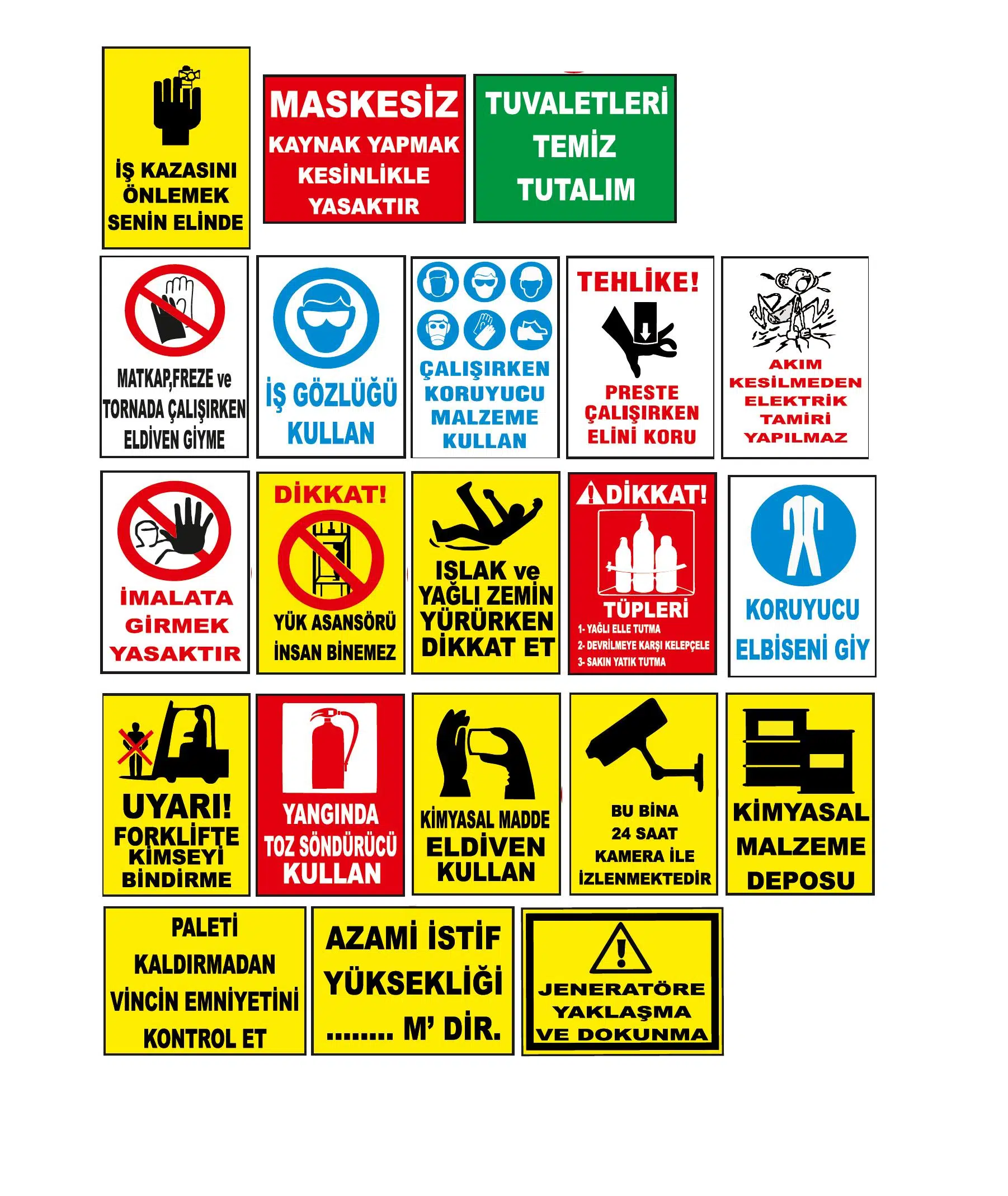 | Etiketler | Atölye Fabrika İşyeri İş Güvenliği Uyarı Levhası -21 adet Pvc Levha |