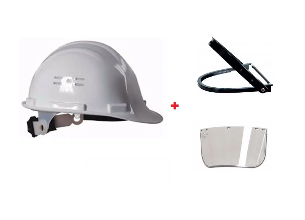 Essafe 1537 Plastik İçlikli Vidalı Deliksiz Baret Beyaz + Essafe Ge 1240 Şeffaf Alüminyum Destekli Vizör 20*40 + Essafe Ge 1220 Vizör Tutucu Braket