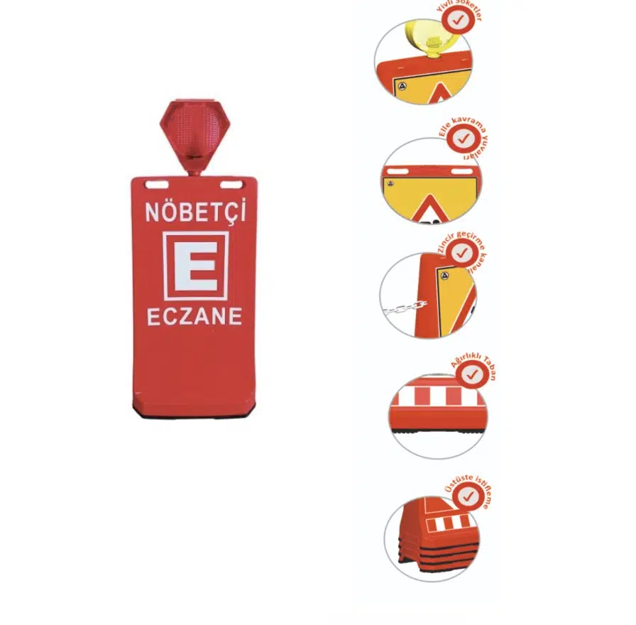 EtiketlerFlaşör Lambalı Eczane Baskılı Çift Yön Ultra Levhalı Reklam Dubası Kırmızı Renk 7.5 Kg