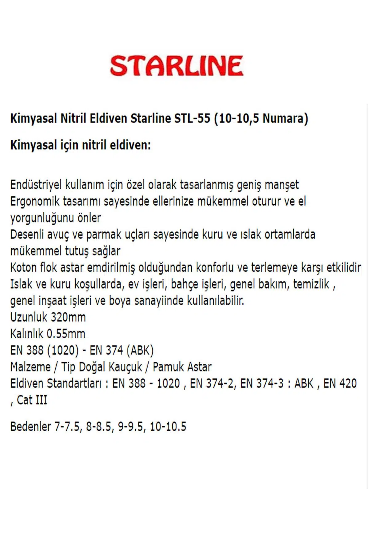 Kimyasal Nitril Eldiven Starline STL-55 (10-10,5 Numara)