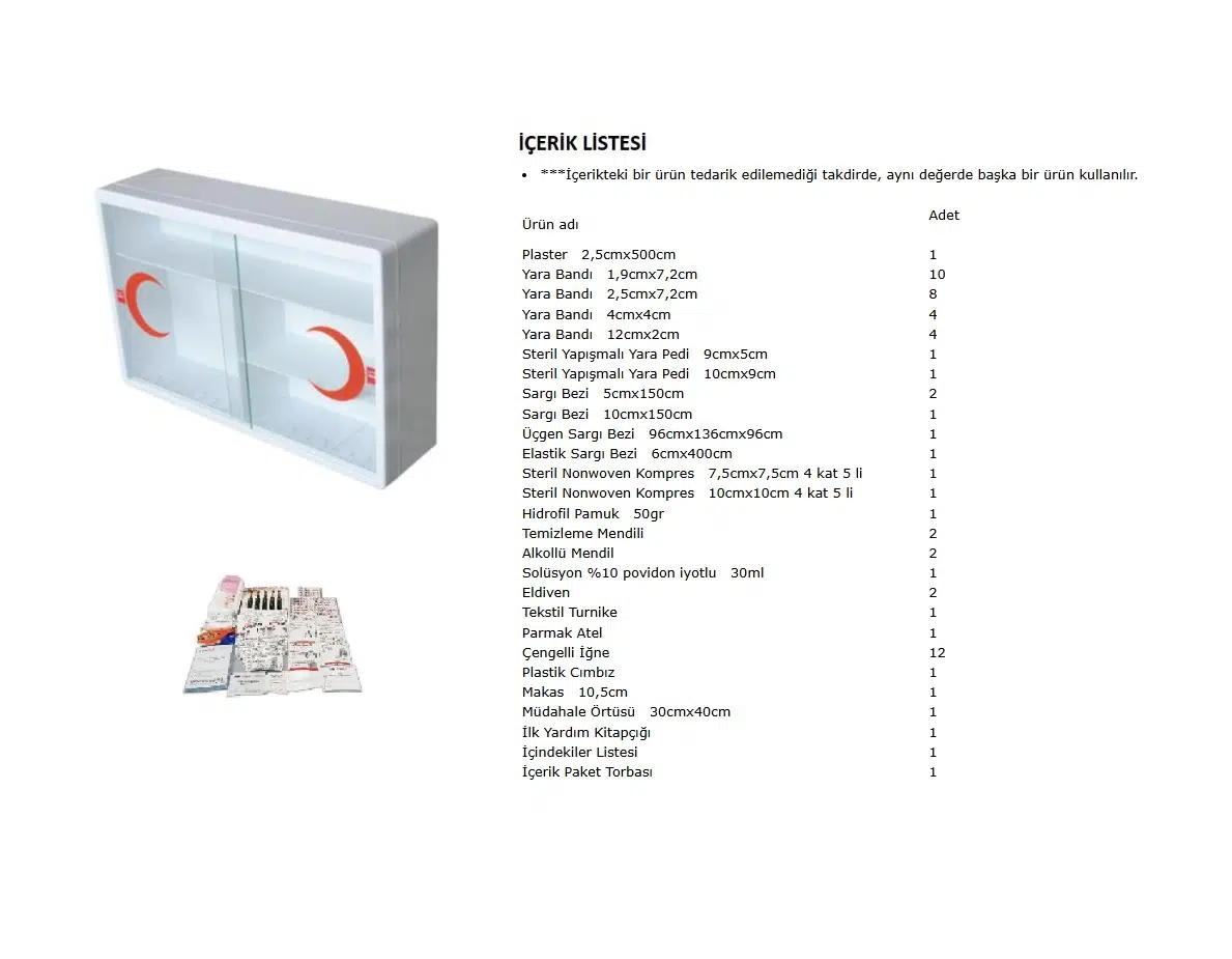 • İlk Yardım İçerik Paketi Ürün Özellikleri: