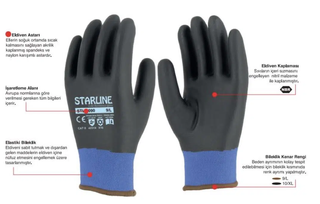 | Etiketler | Soğuk Ortam İş Eldiveni Starline Stl-1090 9 Beden |