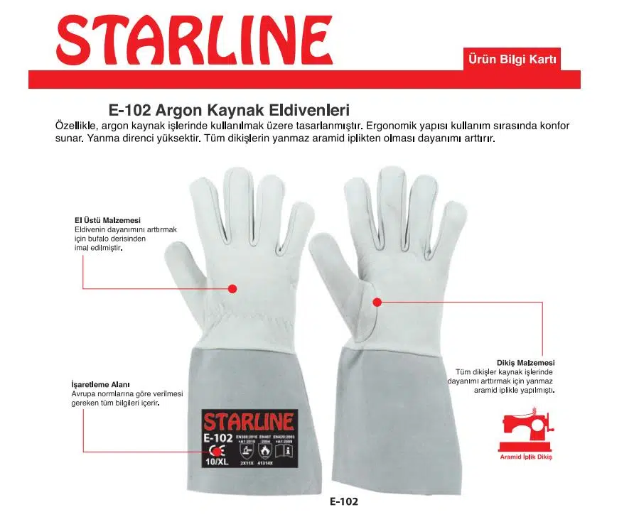 | Etiketler | Starline E-102 Isıya Karşı Dirençli Argon Kaynak Eldiveni 35 cm 2X11X 41314X |